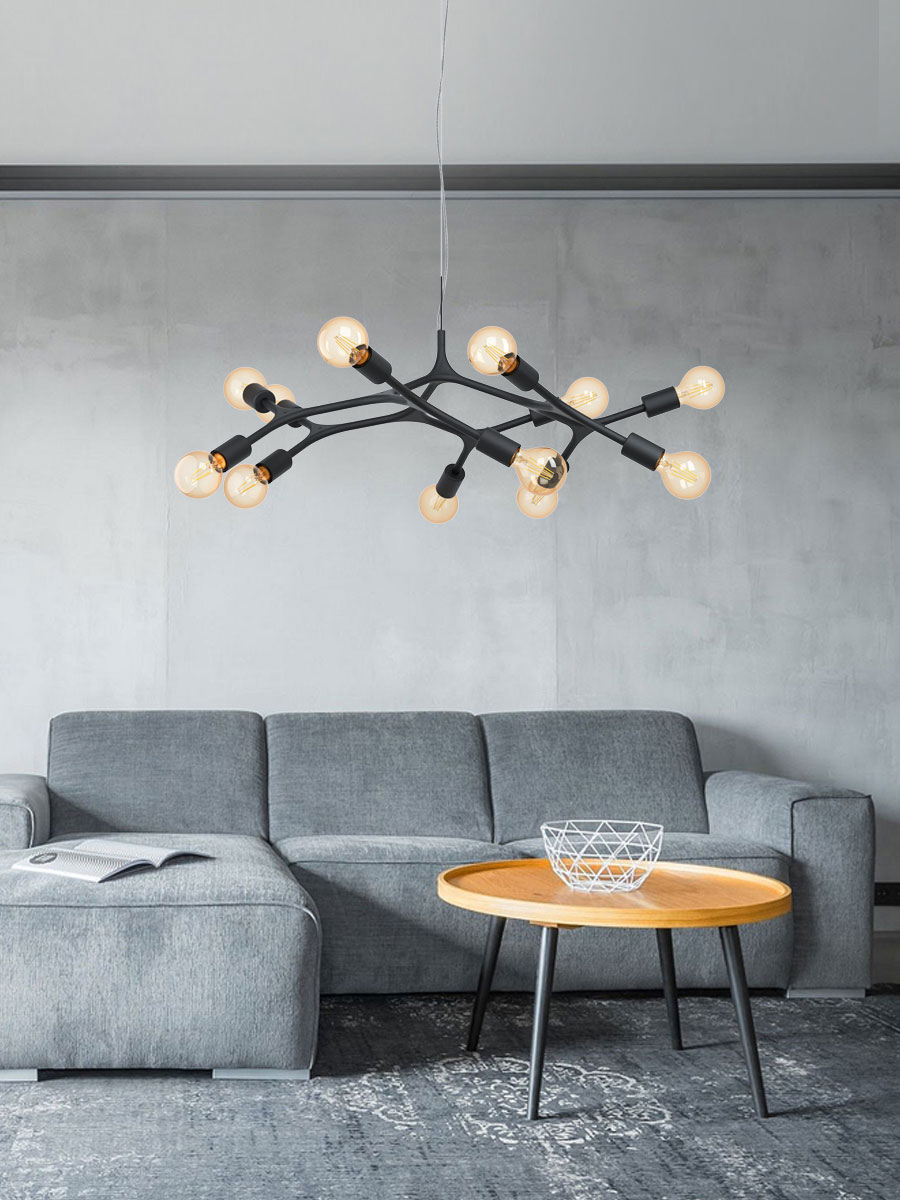 98347 Подвес BOCADELLA, 12х60W (E27), ?920, H1100, сталь, черный — это предмет интерьера, способный создать в пространстве неповторимую атмосферу шика и изящества. Четкость линий, благородство форм и идеально продуманная эргономика способны впечатлить и удовлетворить требования самых взыскательных покупателей и придать интерьеру особый колорит.