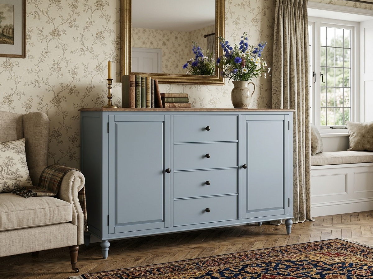 Комод хорошо смотрится как в сдержанных, так и в более выразительных интерьерах. Его можно разместить вдоль стены или использовать как дополнительную поверхность для декора, сохраняя визуальный баланс и ощущение уюта.