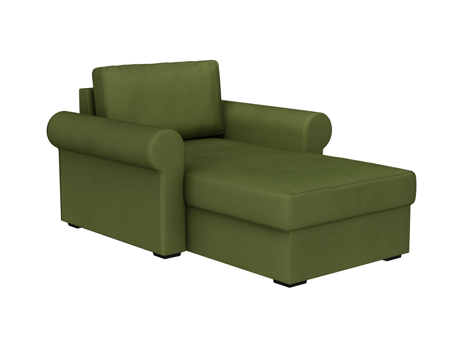Лаконичный однотонный дизайн без декора делают ее универсальной. Кушетку можно поставить в гостиной, спальне, кабинете. Оливковая обивка разбавит холодные оттенки интерьера.