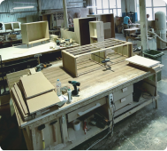 Из заготовок вырезаем детали, прессуем, шлифуем, простругиваем. Для увеличения прочности отделываем детали шпоном.