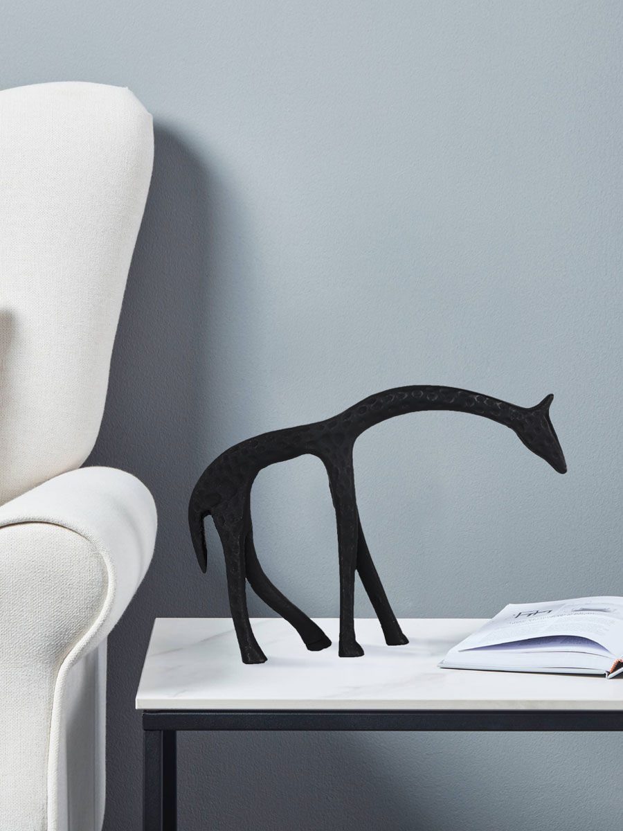 427032 Статуэтка Жираф SUZU, L165, B30, H115, алюминий, черный создает в помещение уют и прекрасно дополняет интерьер квартиры или загородного дома, оформленный как в классическом, так и современном стиле. Продукцию, принадлежащую к дизайнерскому классу, создают только из самых качественных и безопасных материалов с использованием новейших технологий производства. В ней идеально выверена каждая деталь. Изделие преображает пространство, гармонично сочетая в себе уют, удобство и красоту. Этой стильной модели не страшны капризы моды — и через год, два, пять она будет смотреться также уместно.