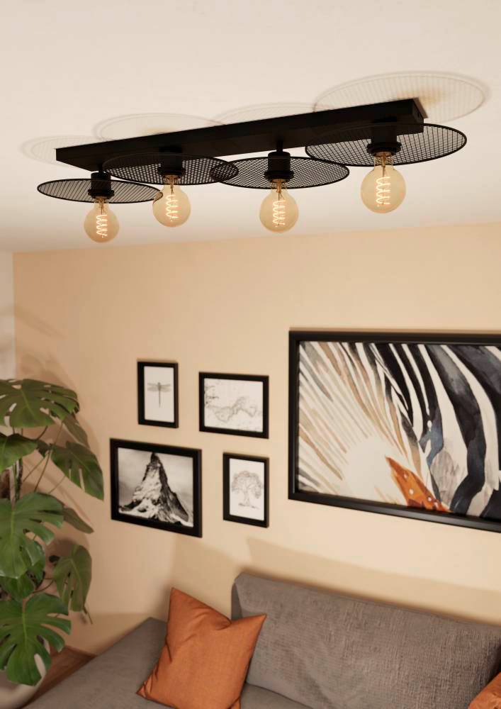 43729 Потолочный светильник IKESTON, 4Х40W, E27, L950, B330, H120, сталь, черный создает в помещение уют и прекрасно дополняет интерьер квартиры или загородного дома, оформленный как в классическом, так и современном стиле. Продукцию, принадлежащую к дизайнерскому классу, создают только из самых качественных и безопасных материалов с использованием новейших технологий производства. В ней идеально выверена каждая деталь. Изделие преображает пространство, гармонично сочетая в себе уют, удобство и красоту. Этой стильной модели не страшны капризы моды — и через год, два, пять она будет смотреться также уместно.