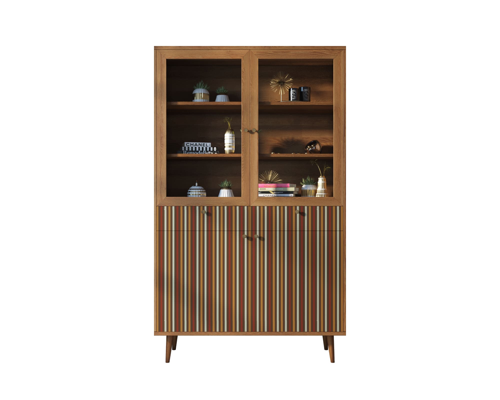 Буфет "Berber" имеет два выдвижных ящика на шариковых направляющих (могут быть заменены на доводчики по желанию). Низ буфета разделен на две секции, которые скрываются за двумя дверками, и полкой. Верхняя часть закрывается стеклянными дверцами, а на двух полках отлично расположится декор или кухонная утварь.