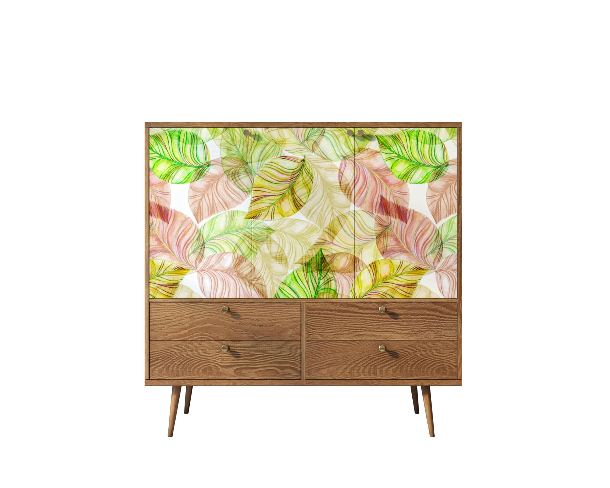 Большой комод "Berber" имеет четыре вместительных ящика на металлических направляющих и три дверки на петлях с доводчиком. Пространство за дверками поделено на две секции, в каждой из которой есть съемная полка регулируемая по высоте в трех режимах.