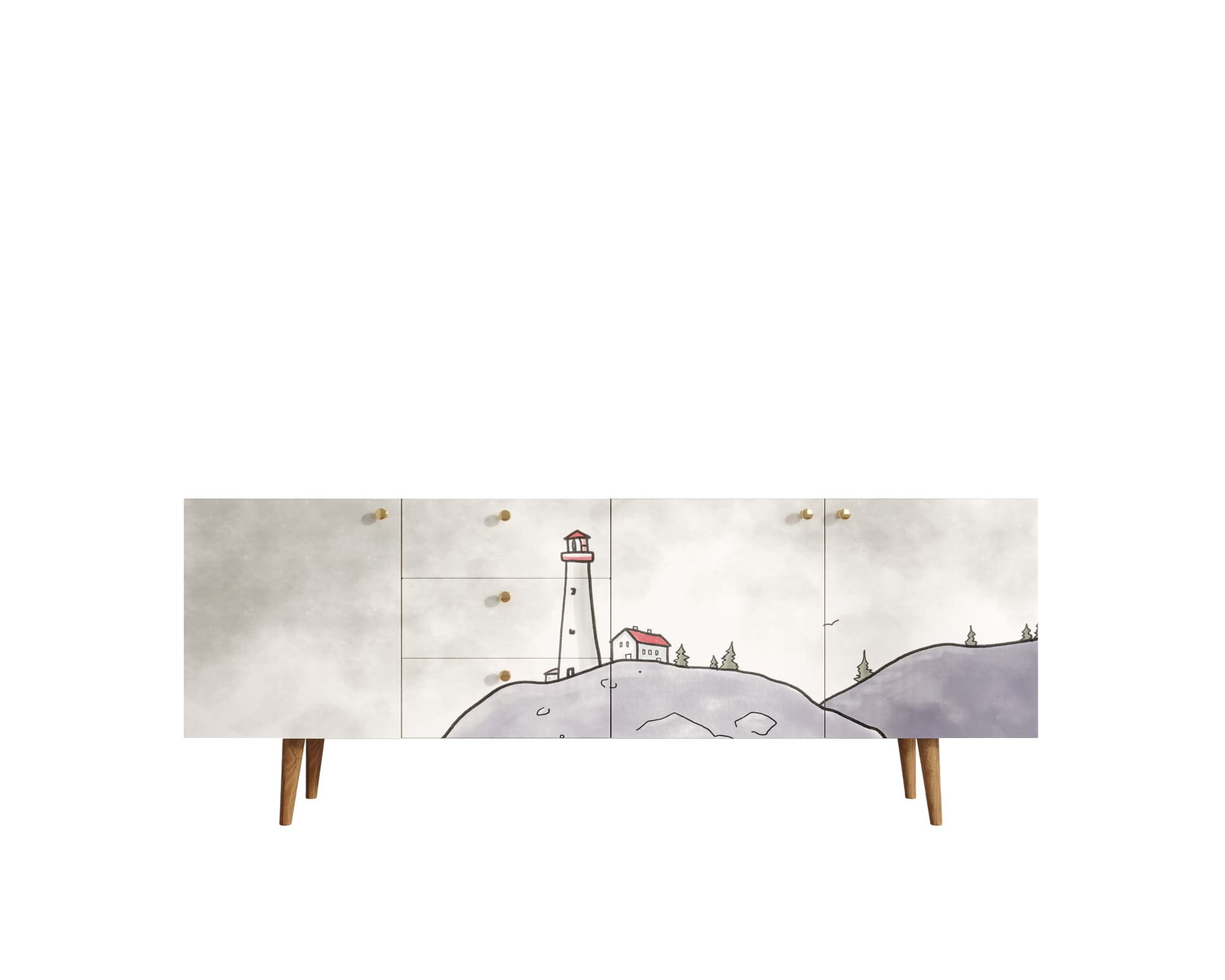 Комод "Berber" удлиненный. Удлиненный комод "Berber" снабжен тремя небольшими ящиками, а за дверцами пространство разделено полкой. Комод функционален и может служить тумбой под TV, дополнением к дивану в гостиной, который зонирует пространство комнаты или быть самостоятельным арт-объектом.