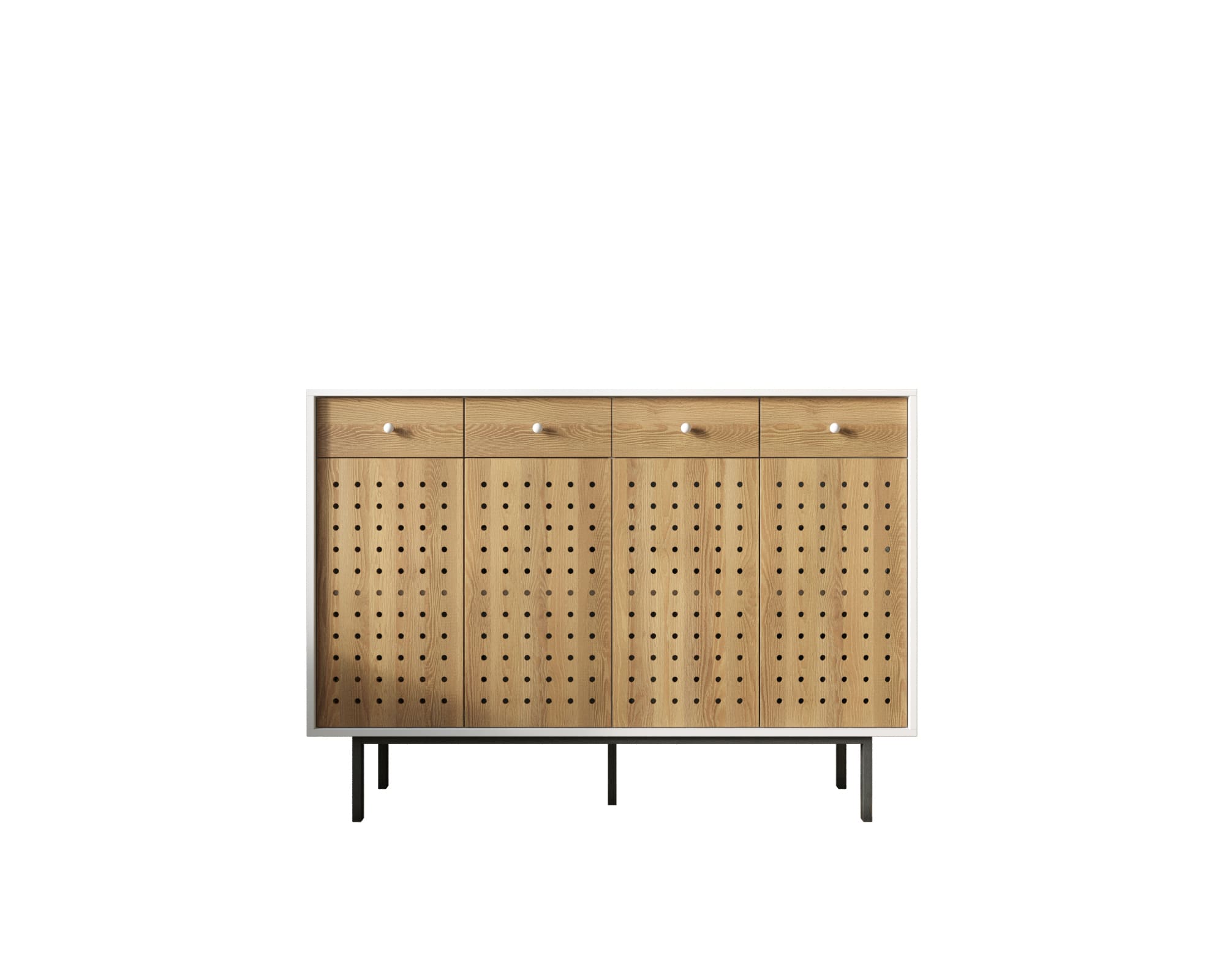 Комод 4 двери, стиль Джапанди, белый - KT21