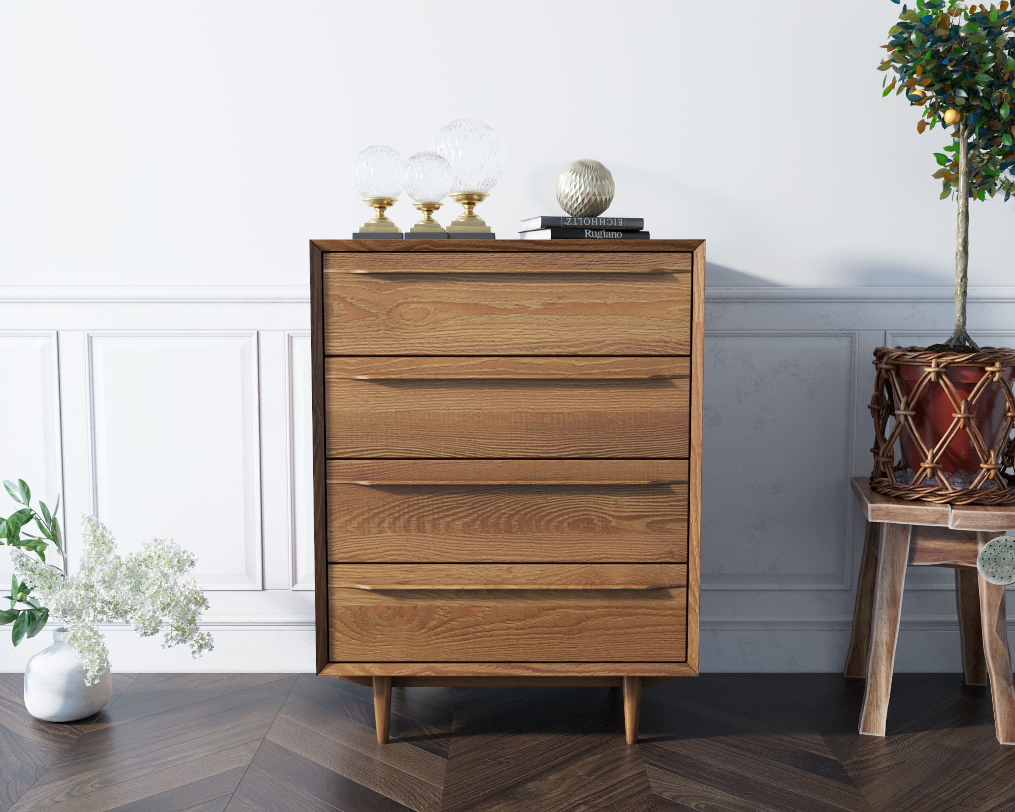 Орех Комод в Скандинавском стиле "Bruni" на четыре ящика арт BR08