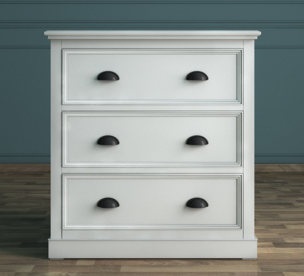 Компактный белый комод коллекции “Palermo” с тремя выдвижными ящиками изготовлен из натурального материала - массива березы. Элегантный и простой дизайн данной модели придаст комнате легкий французский шарм.