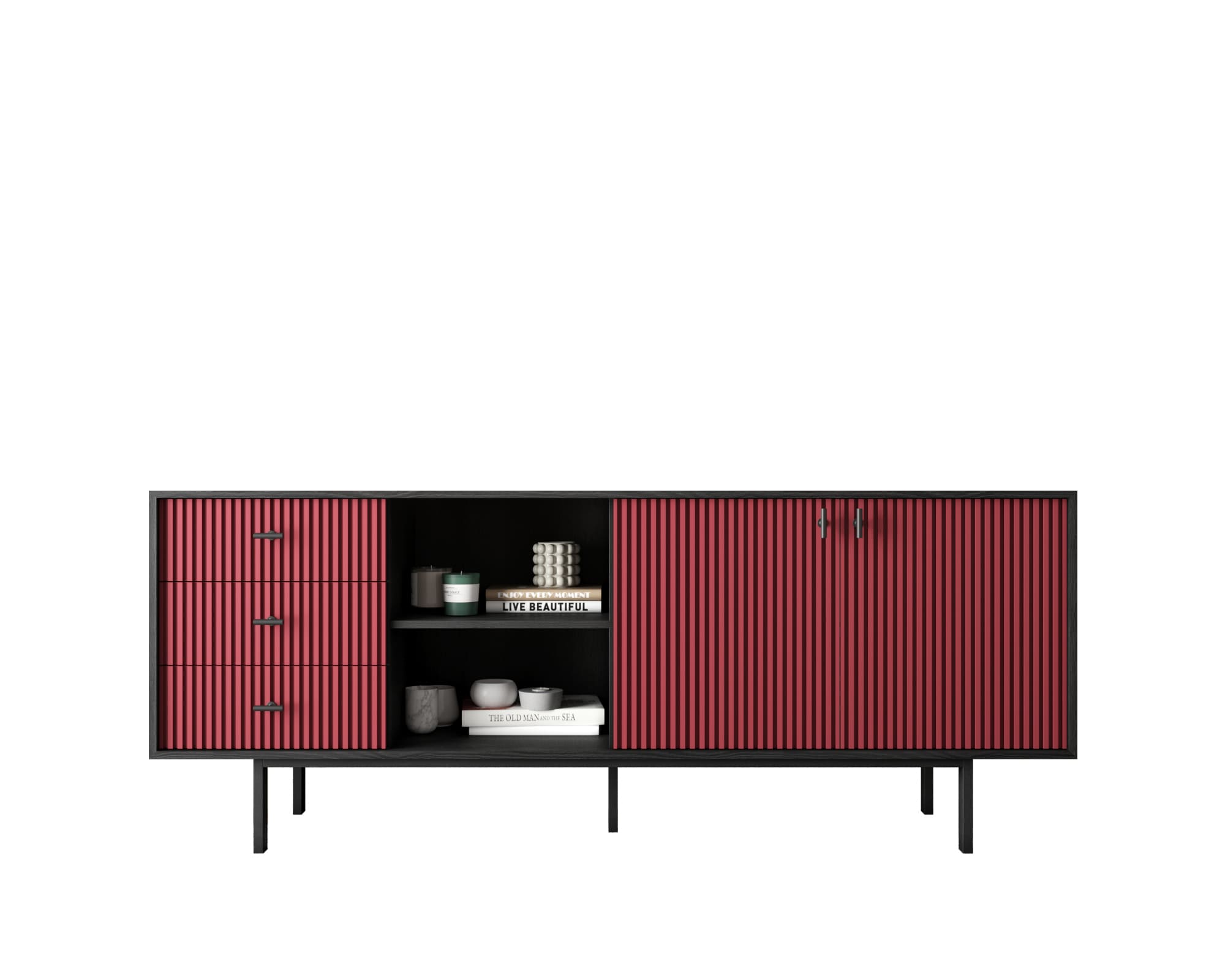 Черный Комод с дверками и нишей "Emerson" арт EM15/red/L