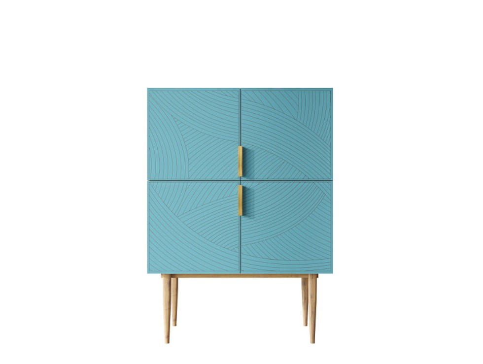 Голубой Малый комод с четырьмя дверками на высоких ножках "Line" LN13/GR1/blue