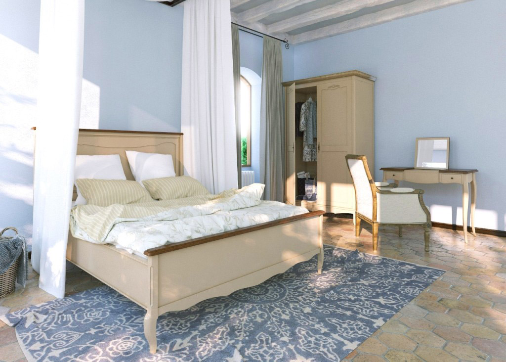 Желаете засыпать и просыпаться в поистине царской обстановке? Тогда, спальня от французских дизайнеров "Leontina" – то, что вам нужно! Большая двуспальная кровать, выполненная из массива березы – настоящее королевское ложе! Гнутые ножки кабриоль, фигурный декор, нежные пастельные тона – все в ней роскошно, изящно, великолепно! Туалетный стол "Leontina" – настоящее произведение мебельного искусства! Его зеркало вам обязательно расскажет о том, что нет никого на свете милее и прекраснее вас, а выдвижные ящички сохранят тысячи женских секретов! Платяной шкаф "Leontina" позволит вам разместить ваш гардероб со вкусом и комфортом, а массивное мягкое кресло из дуба подарит вам необычайный комфорт и довершит великолепный образ спальни Прованс.