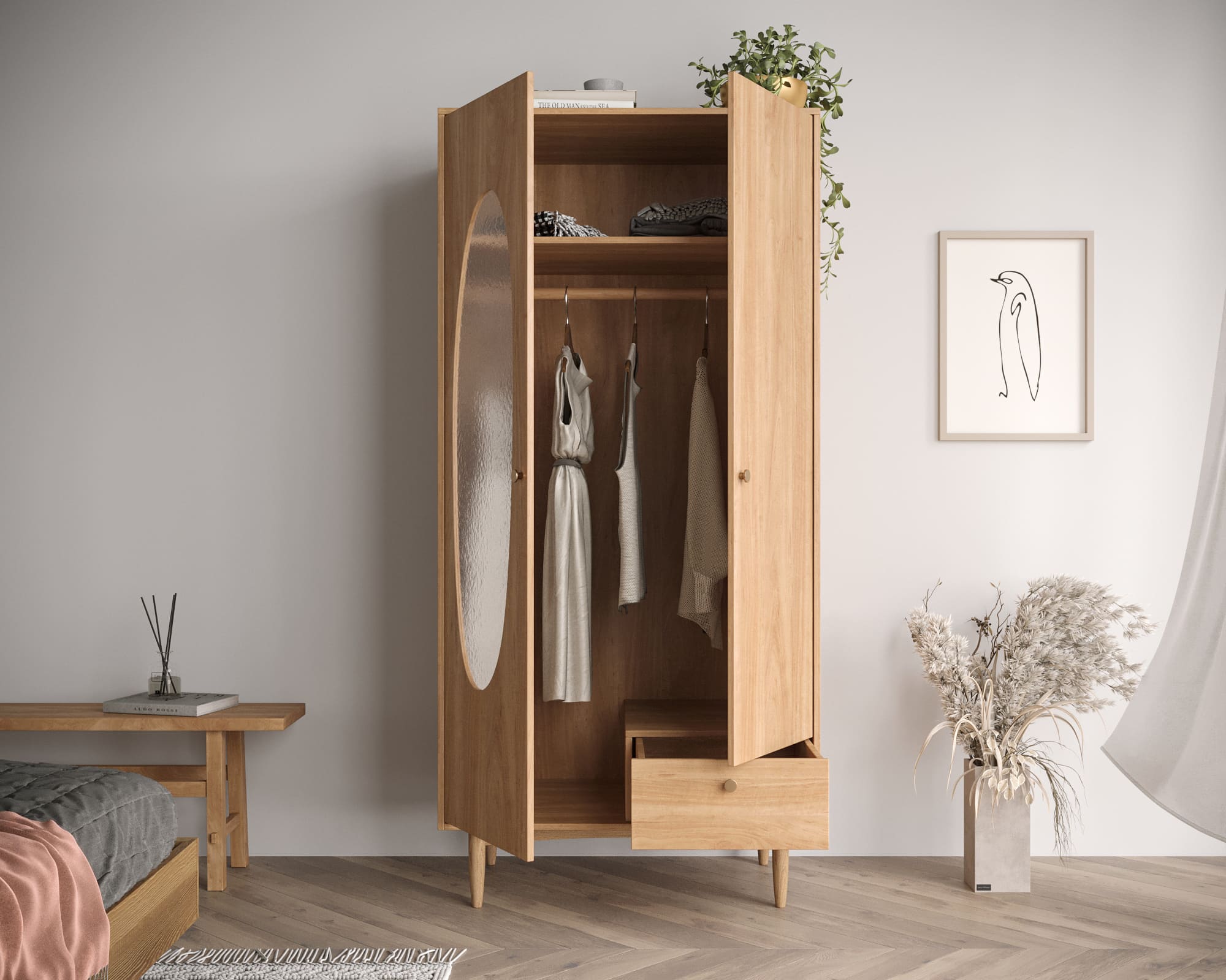 Трехстворчатый шкаф Bubble - идеальное решение для тех, кто ценит комфорт и удобство. Шкаф состоит из двух независимых секций, которые можно использовать как вместе, так и отдельно, и спроектирован таким образом, чтобы максимально соответствовать требованиям современного стиля и дизайна интерьера. Внутри шкафа есть множество отсеков, которые могут быть использованы как для хранения одежды, так и для других вещей.
