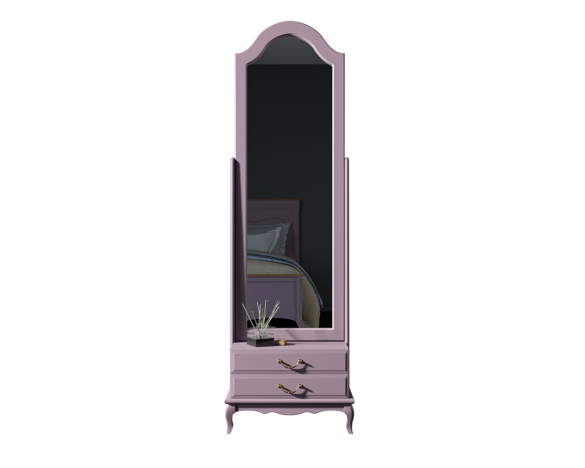 Зеркало напольное "Leontina Lavanda" 2 ящика. Напольное зеркало "Leontina" с подвижной опорой из массива березы и небольшой тумбой для хранения мелочей идеально впишется в прихожую или спальню. Высокое зеркало станет источником рассеивания естественного света, зрительно расширив пространство помещения.